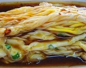 而我更喜歡欣賞的是腸粉出鍋的那一剎——在騰騰水霧中,那一塊布被拉起來,粉案上便變摩術(shù)般地變出一塊白玉般的“布”,這熱辣辣的“布”被快手地卷起來,疊到碟子上,如一卷卷袖珍的白綾。如果是牛肉腸,豬肉腸,你還隱隱的見到白綾上的“花紋”。每當(dāng)此刻,我都對拉腸粉的師傅徒生敬意。此等對白米是何等的深情,好比年復(fù)一年日復(fù)一日地站在熊熊烈火前“織布”,一生織出多少萬丈“白綾”,織出廣府飲食文化燦爛的一章。毫不否認(rèn),將大米化作美味美食,離不開這個拉腸粉機器啦!